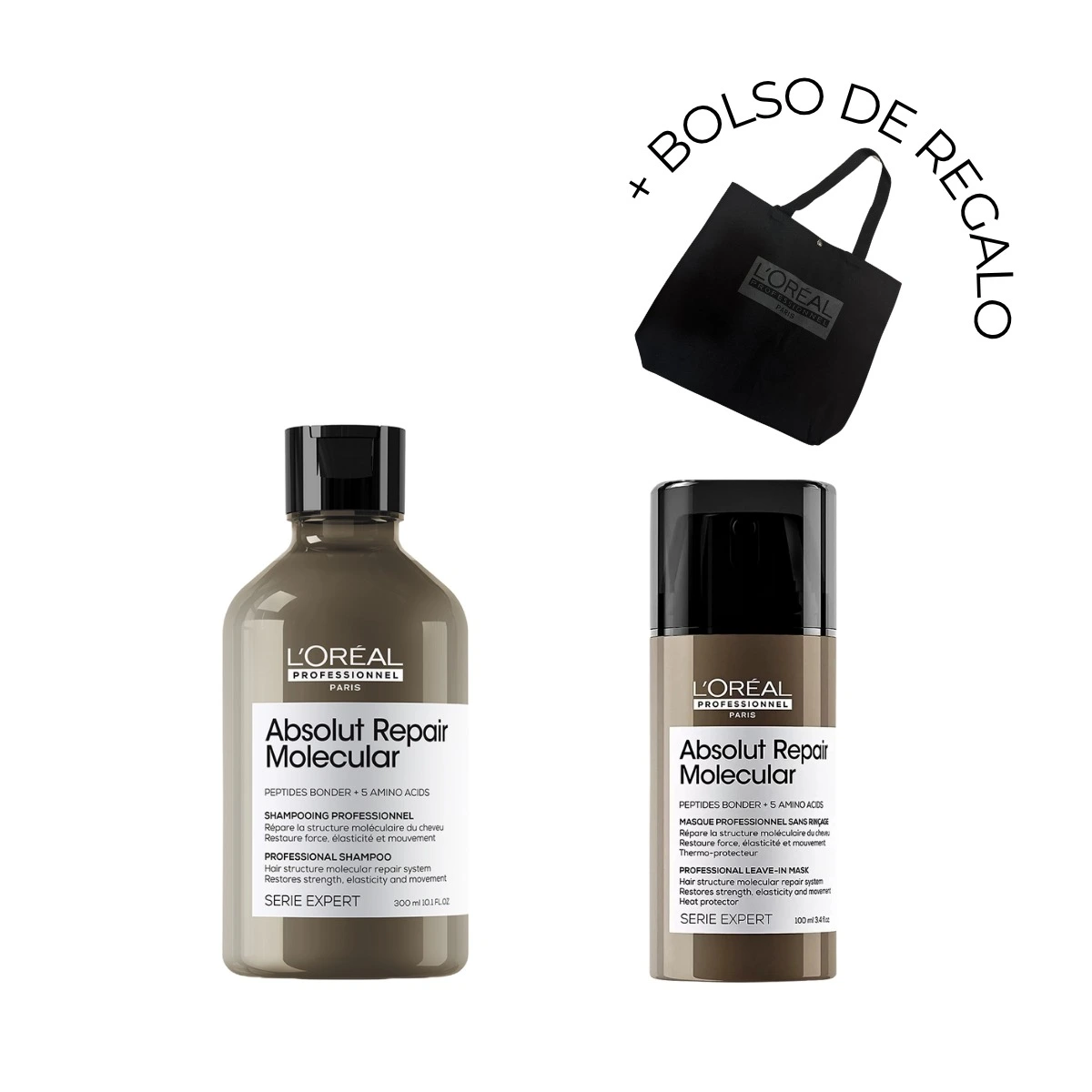 Kit Spectrum L´Óréal: Shampoo + Acondi. + Máscara + Sérum. Regalo Botella
